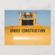 This cool postcard features a yellow construction bulldozer tractor with the personalized message, "Under Construction." Photography created by award-winning photographer Maria Jeffs.