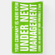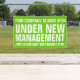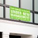 Retail sale signage banner, inform customers of new management and to welcome customers back in with this New management banner in blue with dark blue and white text. Ideal to generate returning business and alert passing customers you are open but under new management. Customise with your own business name and message details. Other colours are available.