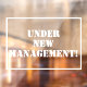 This "Under New Management" Window Cling Graphic is bold enough to announce your change of business ownership. Company takeover or new owners notice. White on clear background.