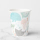Under the sea paper cups feature a whale, tiger shark, jelly, sea turtle and seahorse along with sea grass, shells and starfish.