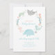 This under the sea themed baby shower invitation features a whale, tiger shark, jelly, sea turtle and seahorse all