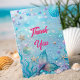 Express votre gratitude dans le style avec cette carte de remerciements sur le thème de la sirène ! Dotée d'un design magique sous-marin avec des étoiles de mer chatoyantes, des coquillages et une queue de sirène étincelante, cette carte est parfaite pour envoyer des remerciements sincères après une fête d'anniversaire, un baby shower ou toute célébration inspirée de l'océan. Personnalisez avec votre nom ou message pour une touche unique. Une façon charmante de faire apprécier ses clients !