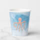 Under the sea paper cups. Watery blue background with cute pink octopus.