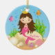 Under the Sea Cute Brunette Mermaid Custom Name Ceramic Ornament