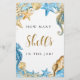 DON'T FORGET TO ADD BRIDE'S NAME AND DATE ON THE BACK. | This Under the Sea Blue and Gold Bridal Shower Game (how many shells in the jar?) features seahorses, starfishes, shells and coral reefs. For more advanced customization of this design, Please click the "Customize” button above! Matching items are also available.