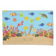 Add a cute ocean touch to the bedroom or nursery of your little boy or girl with this adorable under the sea custom pillow case. Pillow case features several kinds of underwater fish, including clown fish and angelfish, as well as an octopus, a turtle, crabs, a seahorse, and starfish. At the bottom of the water is coral, sand, and a ship anchor. The first name of your young kid adds a personal finishing touch.