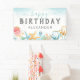Sail away on a sea of birthday joy with our stunning ocean-themed birthday banner! Adorned with beautiful watercolor tropical fish, starfish, jellyfish, and sea plants, it adds a wave of charm to your little one's special day. What's more? It features the exuberant exclamation 'Happy Birthday', and your child's name to personalize the celebration. It's more than a banner - it's a treasure trove of memories in the making!