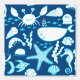 Under the sea blue and white starfish, whale, crab, fish pattern.