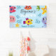 This vibrant and playful “Under the Sea” themed birthday banner transports party-goers to an enchanting underwater world. The design features a whimsical and cartoonish style, perfect for young children’s celebrations. Sea creatures like a pink octopus, a red crab with orange spots, a green seahorse, and colourful fish populate the scene. Their friendly expressions and visible smiles evoke a sense of joy and wonder. The text is fully customizable.