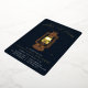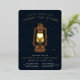 Cool camping themed birthday party invitations for your little one's backyard celebration feature a golden glowing camp lantern illustration set against a night sky dotted with gold foil stars. "Let's camp out under the stars" appears at the top, with your party details along the bottom.
