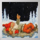 Jenny Nystrom created the image of the tomte or mischievous spirits and gnomes who protected the Swedish farmstead and buildings. They also represented Father Christmas who delivered children’s presents on Christmas eve. This image depicts father and son on a sheepskin under starry night skies.