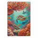 This minimalist artwork depicts a vibrant coral reef teeming with diverse marine life in delicate lines. Set against a light background, it celebrates the beauty of underwater ecosystems and underscores the urgent need for conservation.