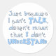 "Just because I don't talk, doesn't mean that I don't understand". The voice of a child with a disability is so often not heard. Listen with your heart and they'll tell you so much more than you ever could have imagined. This design is offered on t-shirts, mugs, hats, magnets, gifts and much more.