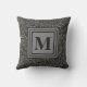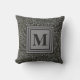 Understated Dark Grey Botanical Pattern Monogram Outdoor Pillow