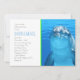 Dolphin wedding invitations for couples who love sea life. An underwater, bottlenose dolphin image borders the right side of this unique and fun wedding invitation. Modern, printed font style with names of the bride and groom in blue to match the blue water dolphin photography. A thin, bright lime green line separates the image from the white panel that holds the custom text and adds a tropical feel. Include the reception venue address at the bottom, or change the text as needed.