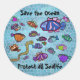 Graphic illustration of colourful sealife deep in the blue ocean.