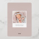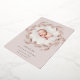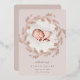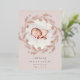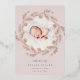 Une élégante faire-part de naissance aux couleurs douces est ornée d'une photo ronde de nouveau-nés entourée d'une couronne de branches botaniques roses en feuille d'or et de feuilles, avec "introduction [Nom]" en bas en lettres gris chic. Personnalisez avec la date de naissance du bébé, et les statistiques de naissance en dessous, et ajoutez un message personnel à l'arrière, ainsi qu'une photo supplémentaire.