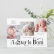 Bienvenue dans le monde et partagez la joie de la saison avec notre élégante carte de faire-part de naissance de Noël, magnifiquement intitulée "A Star Is Born." Doté de trois adorables photos de bébé à l'avant et une à l'arrière, ce design allie typographie moderne et charme festif. Personnalisez-le avec le nom, la date de naissance, le poids et la longueur de votre bébé, ainsi qu’un message de remerciement sincère aux amis et à la famille. Parfait pour envoyer des salutations de vacances tout en présentant votre nouveau membre de la famille. Idéal pour les naissances hivernales, les baby showers de vacances ou comme gardien pour les proches. Imprimé sur stock de carte de haute qualité avec impression photo couleur pour un faire-part vraiment spécial. L'Arrière - plan est blanc.