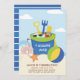 Une invitation à la fête d'anniversaire pour garçon sur le thème de la plage.