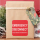 Une feuille de six, 3" x 3" EMERGENCY DISCONNECT étiquettes autocollants avec un sous-titre espagnol pour électriciens. Desconexión de emergencia