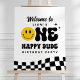Soyez les bienvenus grâce à ce panneau d’anniversaire moderne ONE Happy Dude qui affiche un émoticône souriant — parfait pour célébrer le premier anniversaire de votre petit!