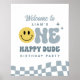 Bienvenue aux invités avec ce panneau d’anniversaire moderne Blue ONE Happy Dude, avec un émoji souriant et un design bleu, parfait pour la fête de votre petit-fils!