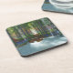Une marche en forêt à travers les saisons, de la neige d'hiver, aux bleuets et azalées du printemps, au vert d'été et au trèfle, aux jaunes et oranges brillants des feuilles d'automne, et retour à la neige. Un arbre d'automne rouge vif marque la fin de la perspective de retour à l'hiver.