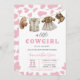 Célébrez l'arrivée de votre petit garçon avec notre Invitation de Baby shower A Little Cowgirl! Cet invitation présente de charmants spots de vache rose, apportant une touche ludique et féminine au thème occidental classique. Des vêtements de cowgirl adorables, un casquette, et de minuscules bottes pendent sur une ligne, ajoutant un flair fantaisiste et rustique. Parfait pour un baby shower d'inspiration rodéo ou occidentale, cette invitation est idéale pour accueillir votre petite cowgirl dans le style. BBS720
