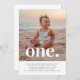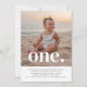 Une simple invitation pour le premier anniversaire avec votre propre photo et les mots 'un.' en haut.
