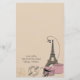 Un arrière - plan rose, avec Tour Eiffel, un timbre de passeport de Paris France, une boussole, et 2 boîtes vintages de casquette avec une paire de sandales strappy sont l'arrangement de cette conception contemporaine. Vérifiez nos enveloppes assorties cette papeterie !