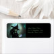 Une sorcière souriante habillée tout de noir vêtue d'un grand casquette noir jette un sort orbital.