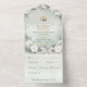 Présentez votre journée spéciale avec élégance grâce à notre Graceful Greenery Mariage All-in-One Invitation. Ce design exquis présente un magnifique mélange de fleurs blanches de rose et de verdure fraîche d'eucalyptus, offrant un aperçu captivant de votre célébration à venir. Les gracieuses roses blanches d'aquarelle et les branches d'eucalyptus encadrent délicatement l'inscription centrale avec votre nom, complétant parfaitement le style boho de votre thème mariage. Idéal pour les épouses à la recherche d'élégance, cette faire-part de mariage tout-en-un met en valeur sans effort les tons vert, blanc et or, ajoutant une touche de luxe à votre décor mariage. Personnalisez ce design charmant pour le rendre unique et permettre à vos invités d'anticiper votre journée inoubliable. Notre invitation tout-en-un innovante comprend un invitation personnalisé joliment imprimé avec une carte postale perforée RSVP facile à déchirer. Simplement plier, sceller avec les autocollants clairs inclus, et le courrier. Vos invités apprécieront la commodité de retirer la carte RSVP et d'envoyer leur réponse rapidement.