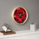Elegant red floral clock featuring a bouquet of intensely red flowers, perfect to add that unepected red touch to your home decor. The text is fully editable, making it a great housewarming gift for a new home.