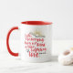 This stylish two-toned bright red scripture mug with colour accented rim and handle displays bible verse Psalm 143:8—a comforting reminder that the Lord's tender mercies and steadfast love toward us are renewed every morning. A perfect way to sip while savouring this encouraging truth during your morning devotion time! Available in 11oz and 15oz sizes and with a variety of colour accents using the style picker tool.