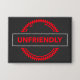 Make your mood loud and clear with this Unfriendly Button. Featuring UNFRIENDLY in bright red all caps inside a black box outlined in white, set against a spiky red circle background, this pin is pure attitude. Great for jackets, backpacks, hats, or anywhere you want to add a little edge. Perfect for those who like their style bold, sarcastic, and unapologetic.