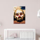 Unhappy Clown is a surreal painting inspired, of course, by my strange fear and acute hatred for all things “clown”. Yes, I don’t like them at all – they scare me.