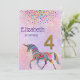 Unicorn 4th birthday invitation glitter confetti