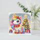 Celebrate the joy of the season with this delightful card featuring a unicorn adorned with colorful lights, standing beside a beautifully decorated Christmas tree.