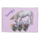 Magical white unicorn and colourful butterflies and flowers fantasy personalized design by Susan. This image is available on many products in my gallery.