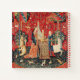 Antique tapestry woven in Brussels around 1500. Princess making music in flower garden with an unicorn ,lion and other animals.,digital elaboration and design by Bulgan Lumini