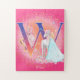 Unicorn and Princess with Castle Letter W Monogram Jigsaw Puzzle