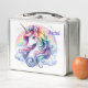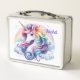 Beautiful unicorn personalized lunch box, same image on front and back, edit the name yourself when you order.