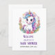 Unicorn baby shower invitation. Invite family and friends with this personalized party invitation. It features a cute unicorn. Personalize this unicorn party invitation by adding a name, date, time, location and more. This baby shower invitation is perfect for a baby shower. Matching items available.