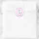 Magical and adorable baby shower design featuring a cartoon unicorn with magical pink and mint ombre colour hair and gold horn. There are purple and gold glittered stars around the unicorn. Get this unique yet trendy sticker for your unicorn theme baby shower! It has the mommy-to-be's name and the event date printed. The texts are easily editable online.