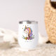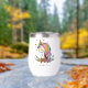 Unicorn Cute Whimsical Girly Pink Floral Personalized Name Thermal Wine Tumbler features a cute unicorn with stars, hearts and flowers. Perfect for birthday, Christmas and holiday gifts for girls, best friends, birthday party gifts and favours. Personalize by editing the text in the text box provided. Designed by ©Evco Studio www.zazzle.com/store/evcostudio