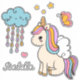 Unicorn Cute Whimsical Girly Personalized Name Stickers Labels features a cute unicorn with stars, heart, butterfly and whimsical cloud with your personalized name. Perfect for water bottles, best friends, birthday party gifts and favours. Personalize by editing the text in the text box provided. Designed by ©Evco Studio www.zazzle.com/store/evcostudio