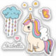 Unicorn Cute Whimsical Girly Personalized Name Stickers Labels features a cute unicorn with stars, heart, butterfly and whimsical cloud with your personalized name. Perfect for water bottles, best friends, birthday party gifts and favours. Personalize by editing the text in the text box provided. Designed by ©Evco Studio www.zazzle.com/store/evcostudio