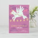 Magical unicorn derby party invitation featuring a cute flying unicorn with wings on a pink fantasy background, perfect for kids birthday parties, girls celebration, unicorn themed events, and magical fantasy parties. This colorful and playful invitation card is ideal for children birthday invitations, baby girl parties, pony unicorn celebrations, and fun cartoon style party invites. Designed for parents looking for unique, cute, and eye catching invitations for kids party, this design fits birthday celebrations, themed events, and magical unicorn party decorations.