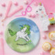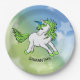 Unicorn on Starry Background Paper Party Plate with customizable text.