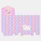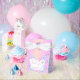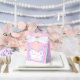 This seamless pattern features a whimsical unicorn with butterfly-like wings, a flowing multicolored mane, and a playful pose as if prancing or leaping through the air. The unicorn has soft pastel shades of pink, blue, and purple with small star details on its body. The background consists of a dreamy gradient of pink, blue, and peach, filled with scattered glowing stars. The overall aesthetic is magical, dreamy, and fairy-tale-like.
